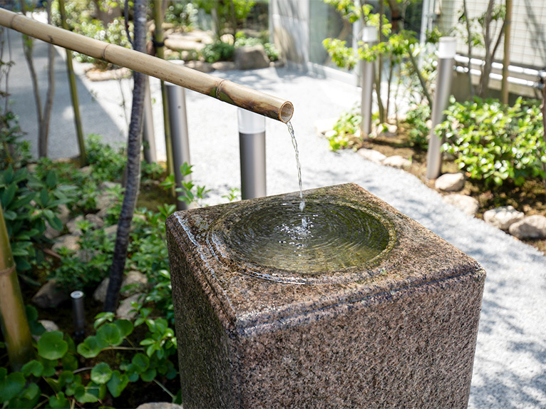 ペットと一緒に、井戸水をくみあげた「せせらぎ」の音に耳をかたむけて、緑豊かな心地の良い空間で思い思いにお過ごしください。