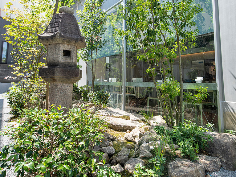 シェアハウス棟とランドリー棟の間にできた小さな庭園。